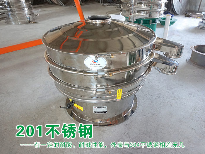 201不銹鋼具有一定的耐酸、耐堿性能,外表與304不銹鋼相差無幾,其耐腐蝕性不能與304和其他類似的鋼相比,不具備防銹功能,材質(zhì)相對較差,且基本上沒有材料回收利用的價(jià)值。對于篩分物料接觸面不是很嚴(yán)格的物料可以使用。
